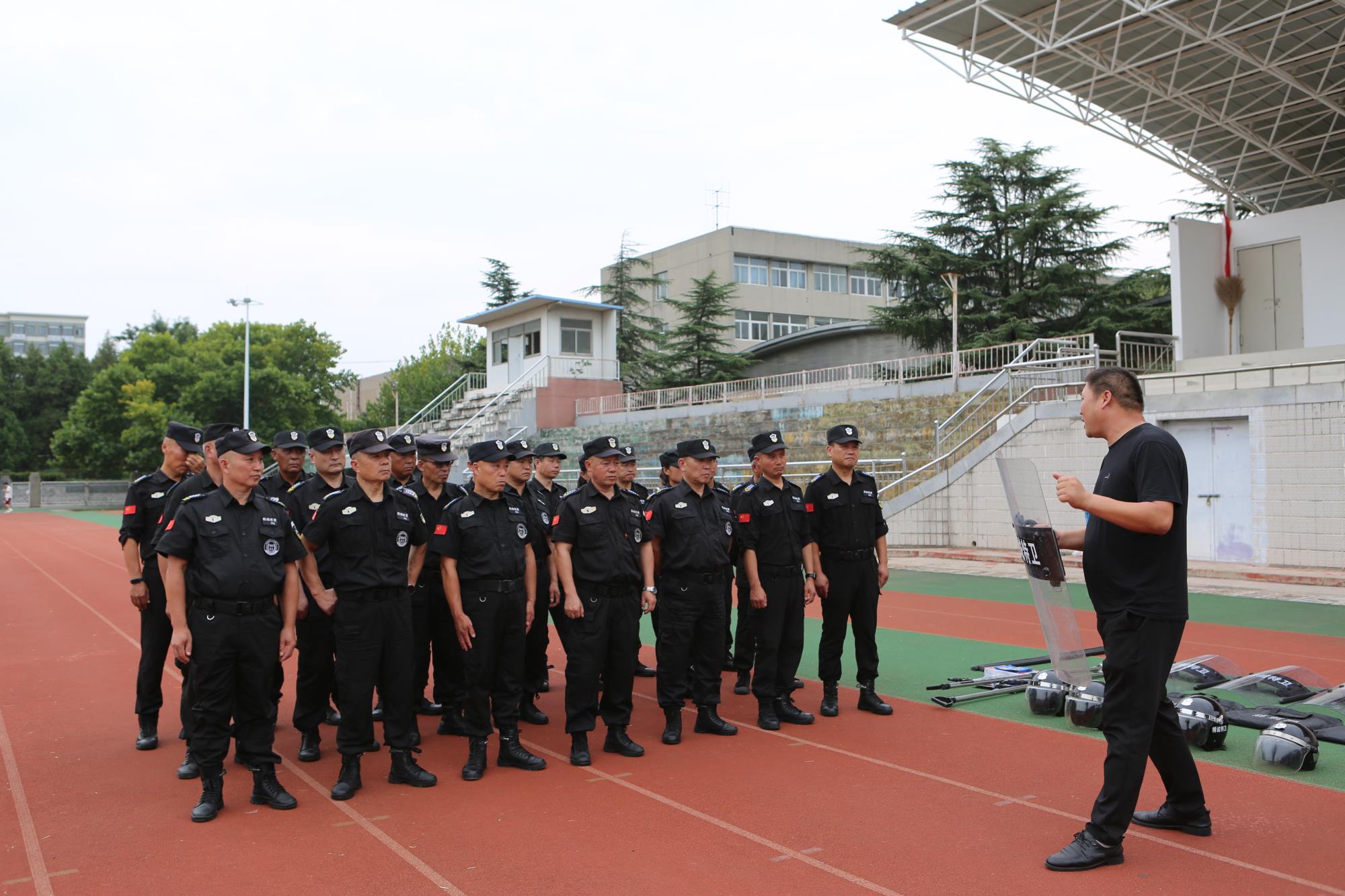 通过精诚特卫专业培训员讲解防暴盾牌、防暴头盔、钢叉、断棍等器械的穿戴和使用。
