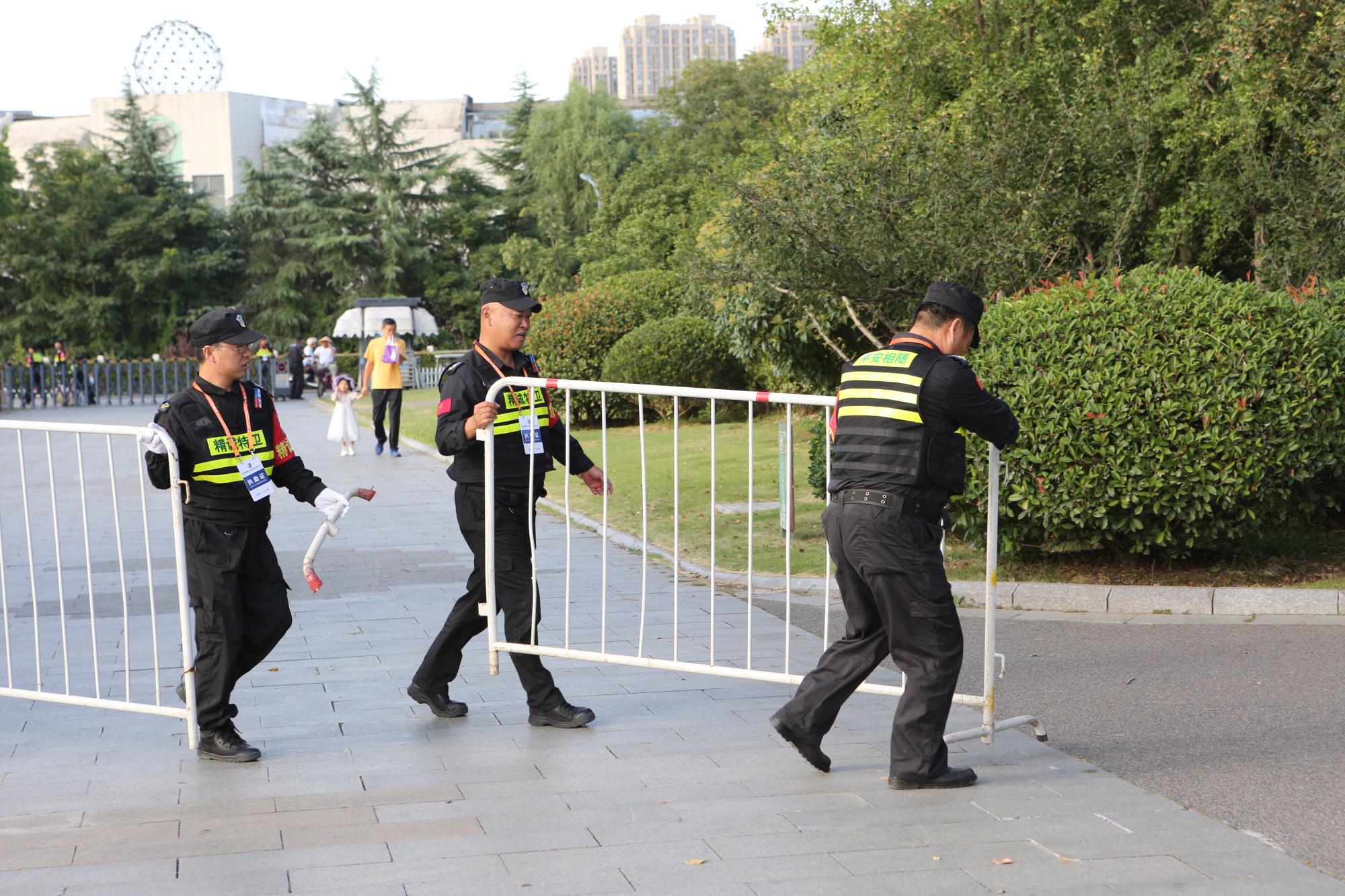 在安保执勤期间,队员们精神饱满、认真负责,定人定岗落实现场勤务,科学规划交通线路,引导车辆安全进出和有序停放、积极协助开展安全检查、引导观众有序入场和内外场地巡控等工作。