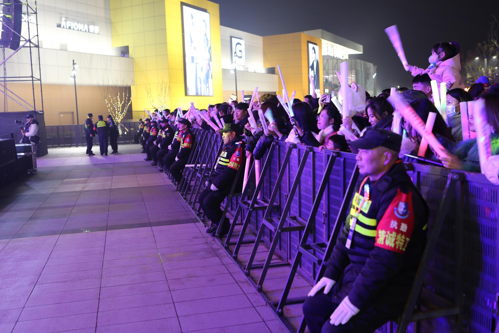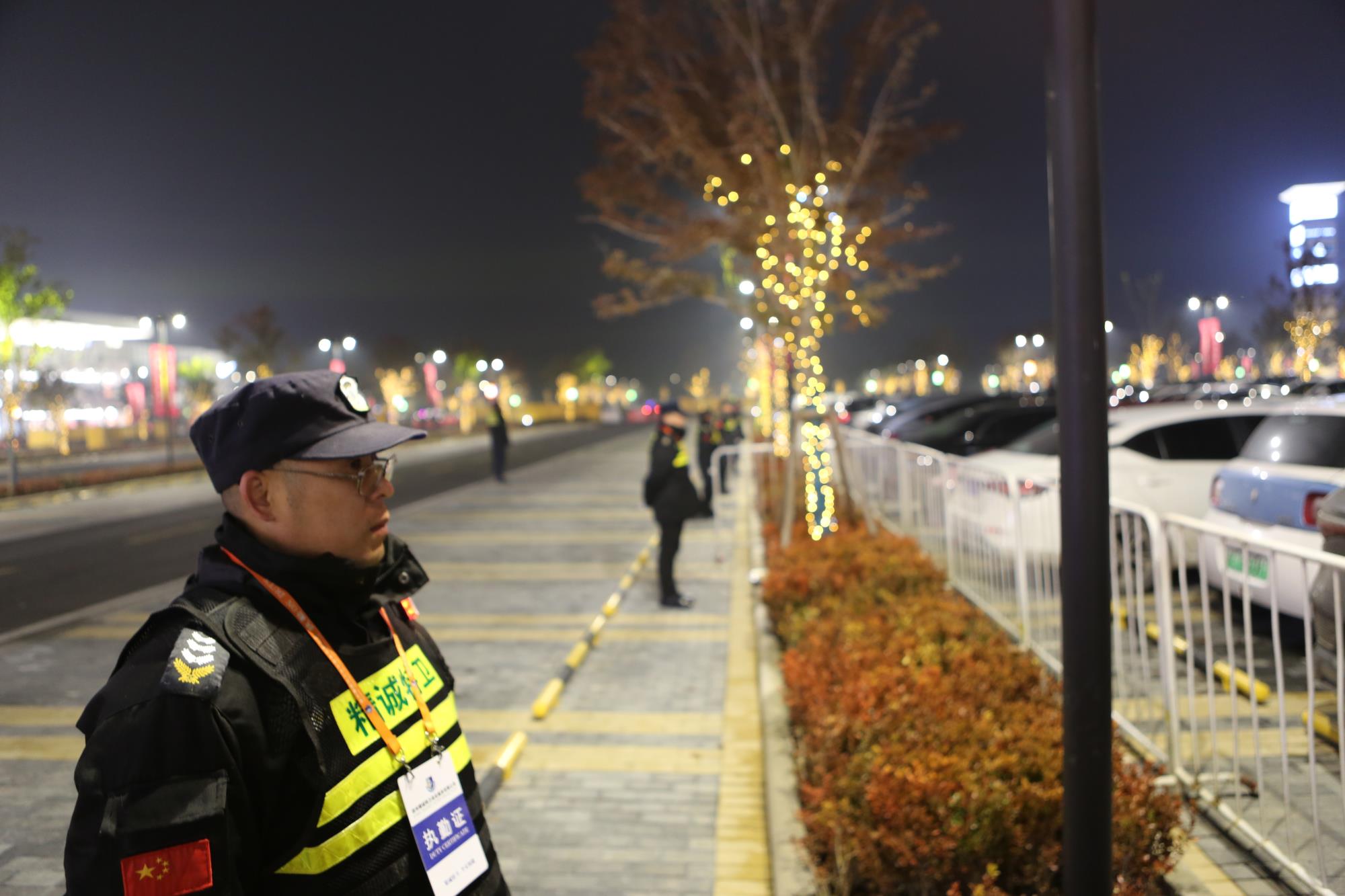 连续二天,所有安保人员提前到岗,立即投入到紧张的安保工作中去。夕阳下的奥特莱斯被渲染的金黄,露天舞台之下音浪翻涌、光影炫动。交通疏导、入场安检、巡逻警戒、区域管理,一切安保工作井然有序。午夜钟声响起,2024跨年钟声响起,安保队员在寒风中筑牢安全屏障。