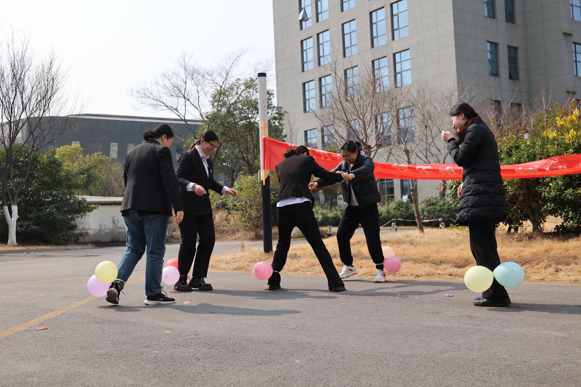 上午,公司的活动场地热闹非凡,沙包投掷、两人绑腿跑、踩气球和套圈活动依次展开。沙包投掷现场,女员工们纷纷施展身手,一个个沙包在空中划出优美的弧线,精准地落入目标区域,展现出她们的专注与力量。两人绑腿跑则考验着团队协作能力,大家两两一组,喊着整齐的口号,步伐一致地冲向终点,现场加油声、欢笑声此起彼伏。踩气球环节更是将气氛推向了高潮,大家你追我赶,在躲避他人攻击的同时,还要努力踩破对方的气球,紧张又刺激。套圈活动中,女员工们全神贯注,小心翼翼地抛出手中的套圈,当套中目标的那一刻,喜悦之情溢于言表。