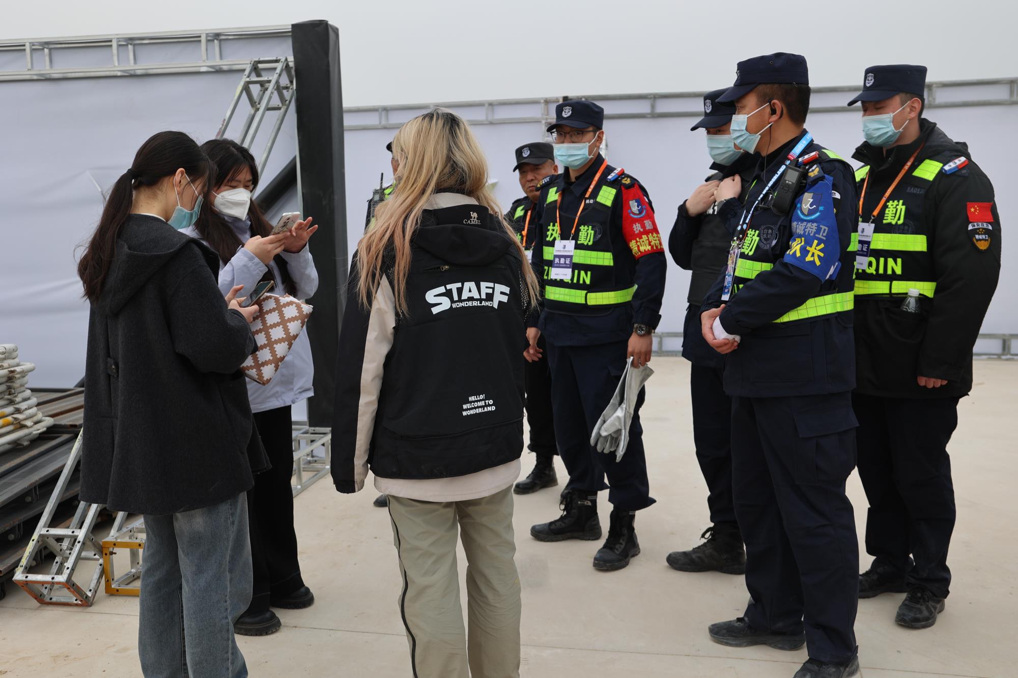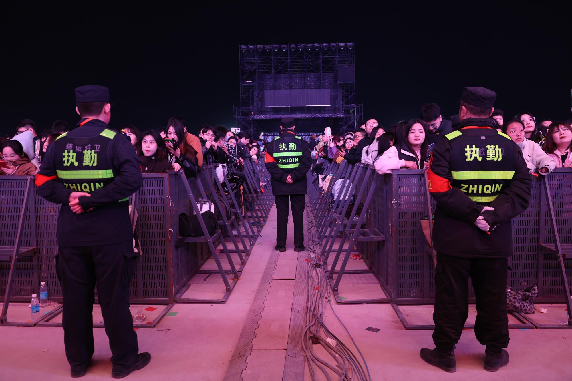 音乐节开幕后,710名保安员准时到岗,以饱满的精神状态投入工作。在入口处,他们组成人墙,引导观众有序排队,严格执行检票与安检流程。手持安检设备,对每一位观众进行全身检查,仔细排查背包、手提袋等随身物品,不放过任何一件可能危及现场安全的危险物品。从管制刀具到易燃易爆物品,通通被拦截在音乐节现场之外,为观众营造了一个安全的入场环境。