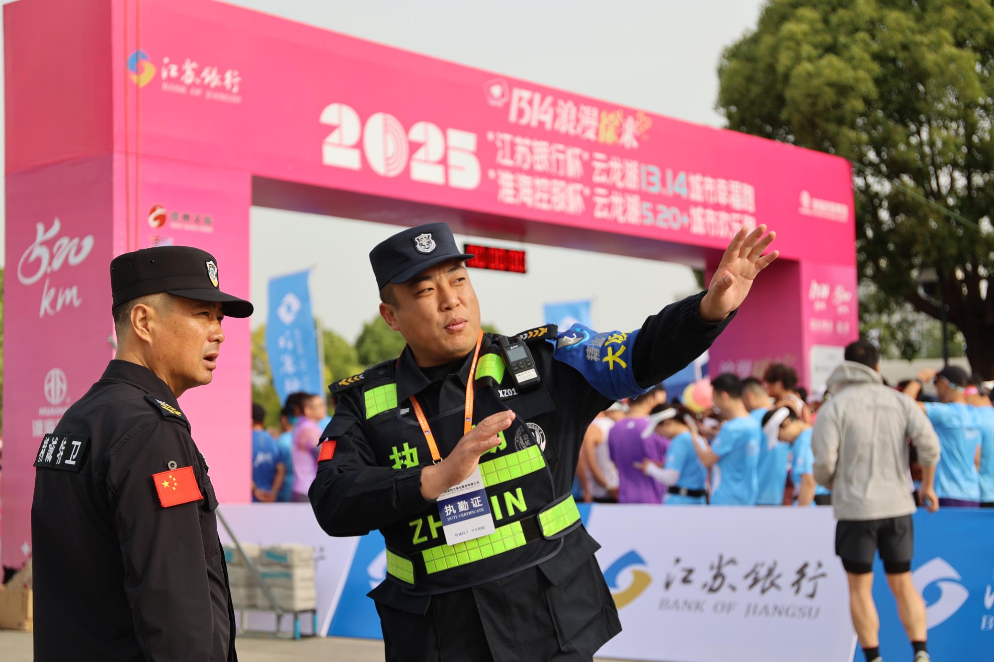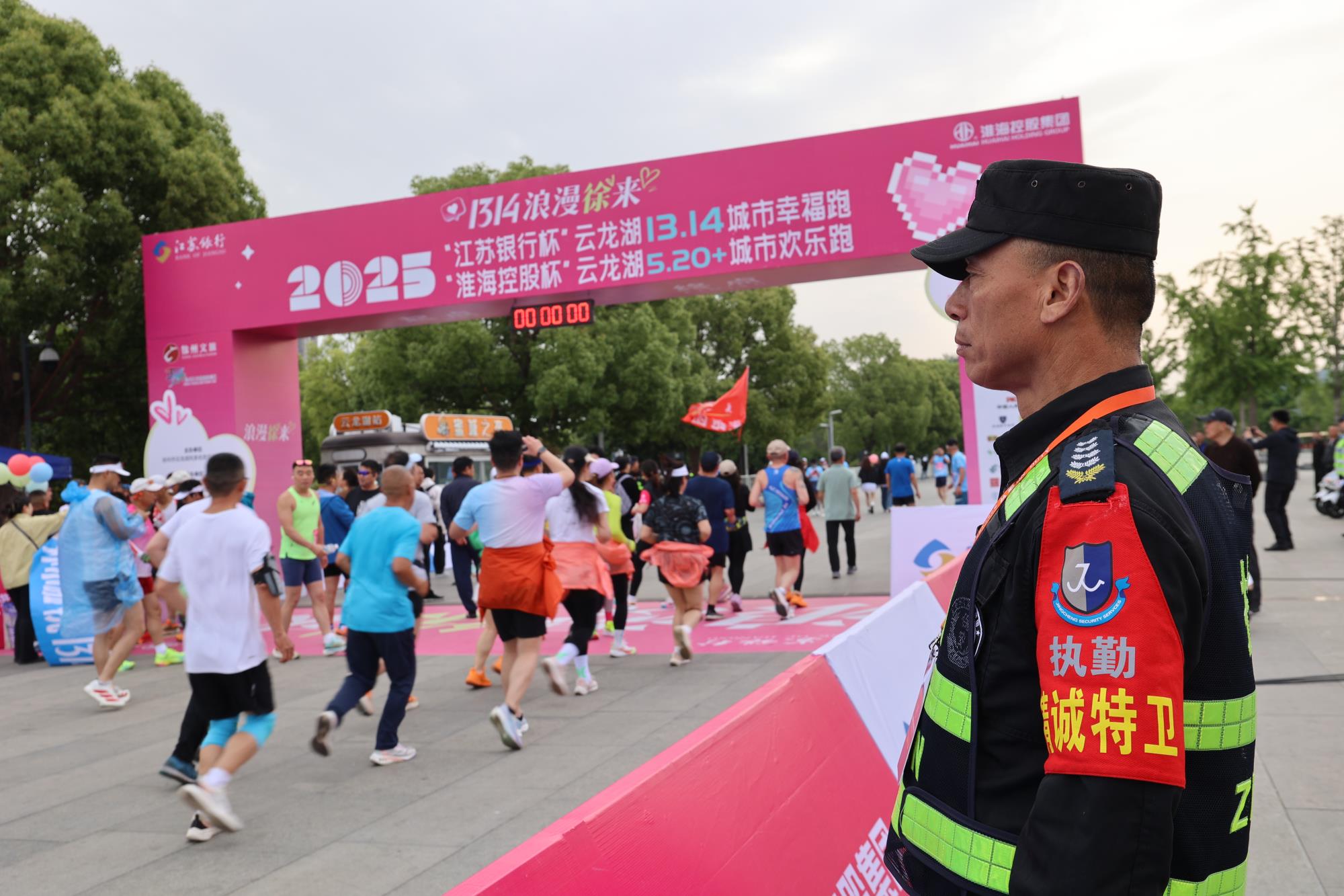 5月18日,“1314·浪漫徐来”2025“江苏银行杯”云龙湖13.14城市幸福跑与“淮海控股杯”云龙湖5.20+城市欢乐跑在云龙湖畔鸣枪开赛,3500余名跑者用脚步丈量湖光山色。徐州精诚特卫出动150名保安队员及无人机,为赛事全程护航。