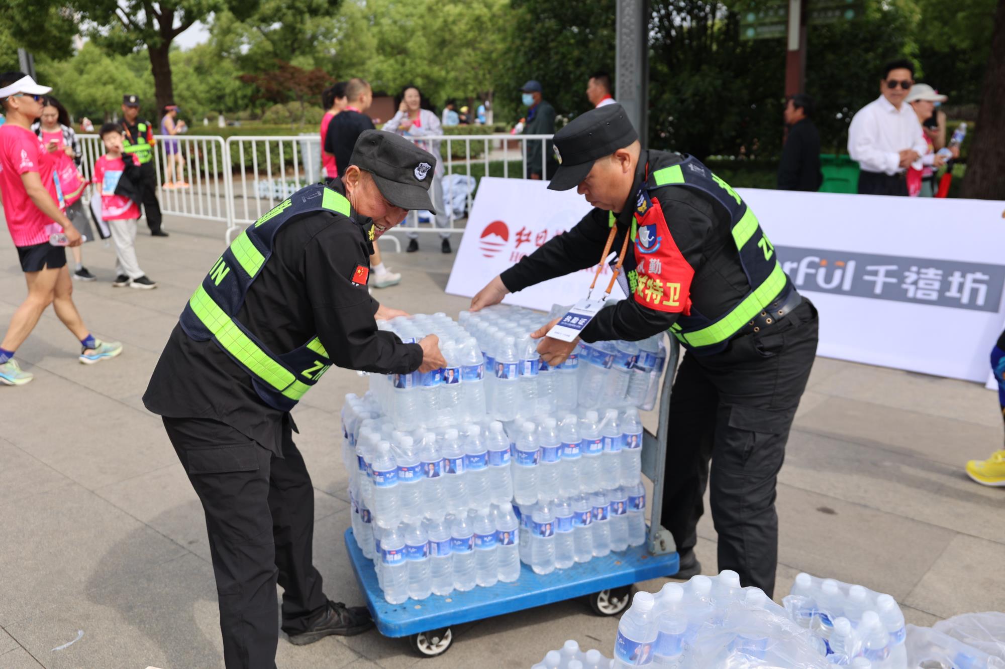 藏蓝身影遍布马拉松沿途