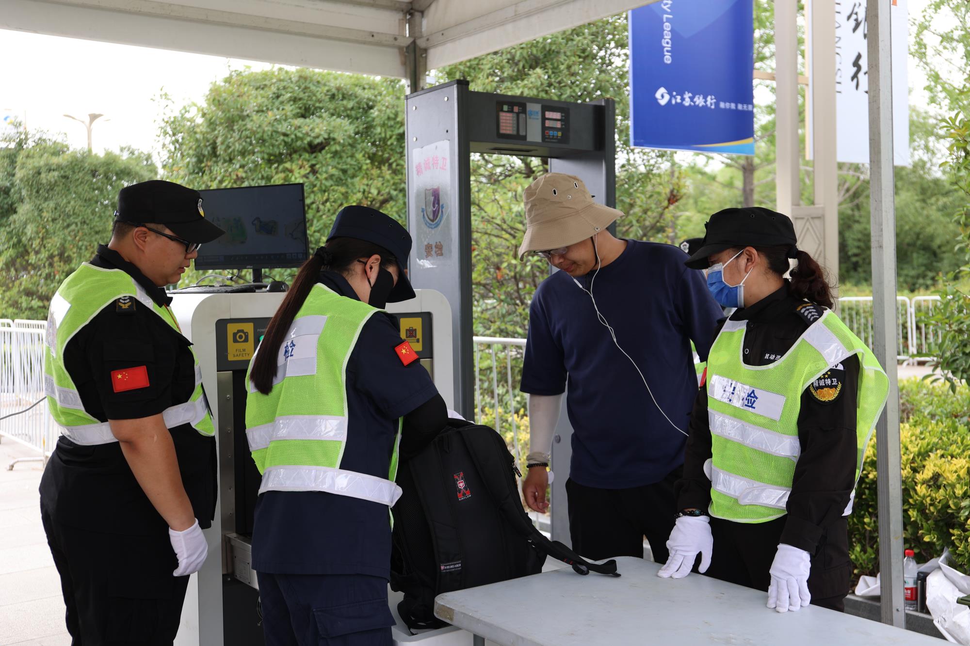 安检值班队长韦玮带领队员,早早架设好安检设备。滚烫的X光机传送带旁,是他们一丝不苟的目光。确保每一件禁带物品被拦截在场外,是守护安全的第一道“防火墙”。汗水顺着鬓角流下,浸湿了衣领,专注的神情却未曾改变。