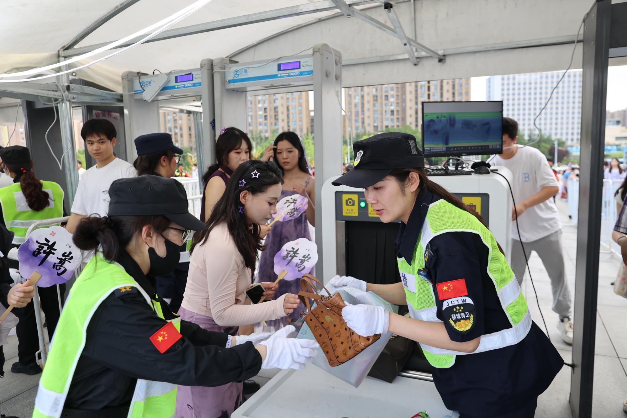 夜幕降临,奥体中心东门检票口迎来人潮高峰。安检组长张培、大队长张贺如中流砥柱,带领队员在喧嚣中维持着高效与秩序。引导、核验、安检,动作利落而严谨,确保每一位观众快速有序入场,让焦灼的等待化为对舞台的期待。