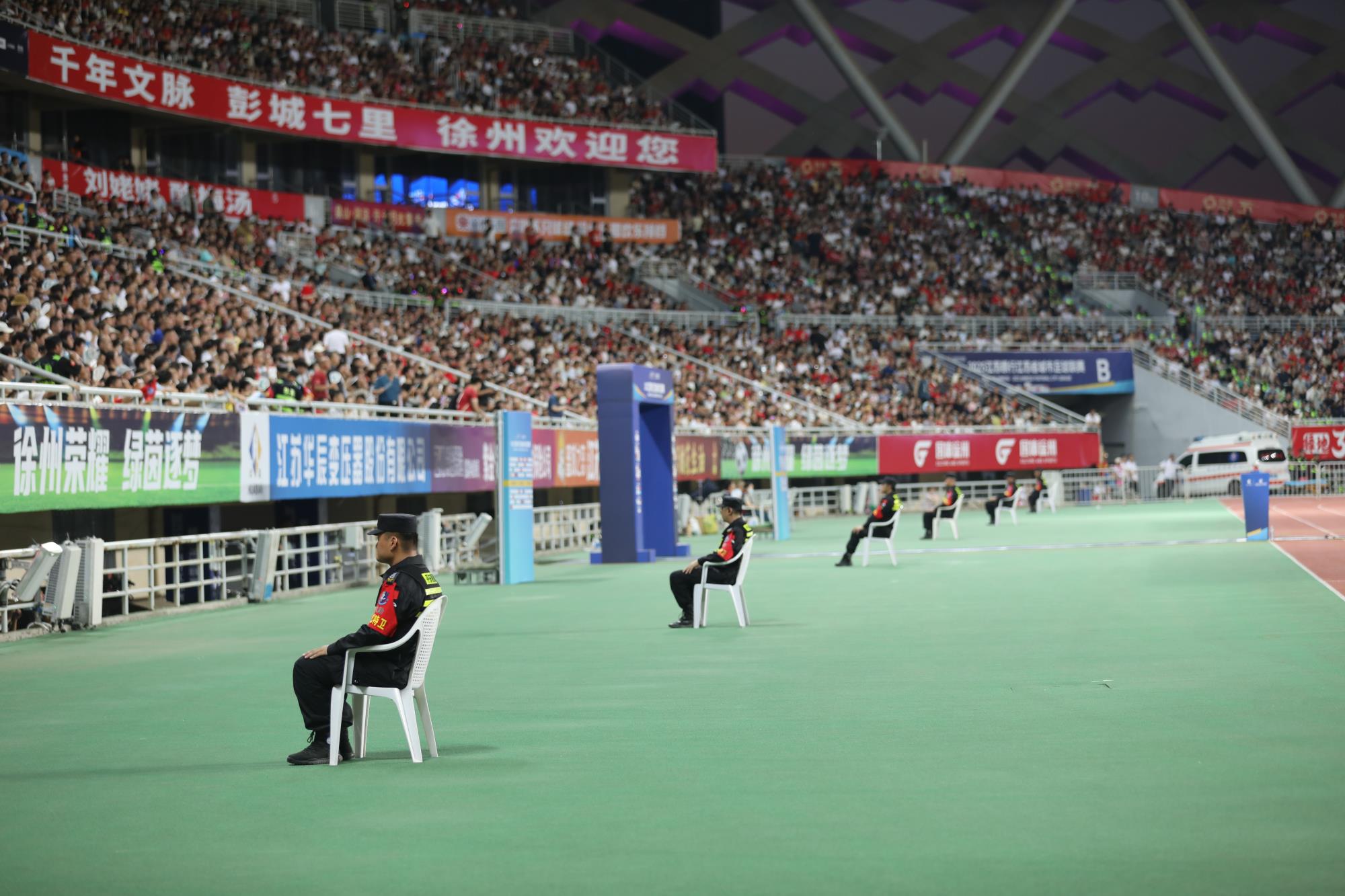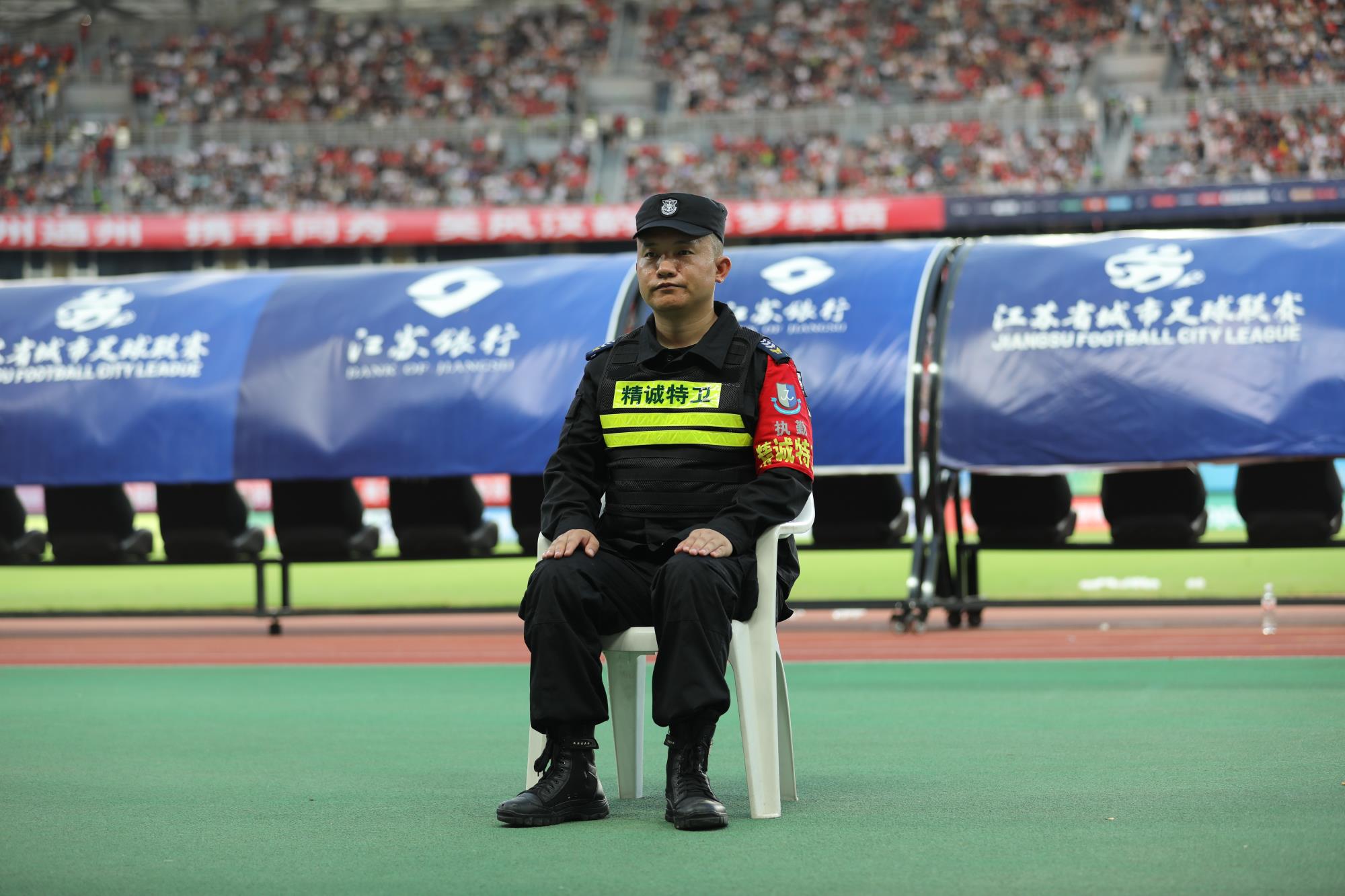 当徐州队球员在球场上一次次全力奔跑、奋不顾身拦截时,精诚特卫队员们也在高温下坚守岗位,时刻警惕着赛场内外的安全动态。球员们拼搏的每一个瞬间,都有安保人员默默守护的身影。那些没被记分牌记录的汗水与坚持,那些未改写比赛结果的拼搏画面,不仅展现了徐州队的坚韧,也见证了精诚特卫不惧酷暑、恪尽职守的敬业精神,共同勾勒出这场赛事中令人动容的奋斗群像。