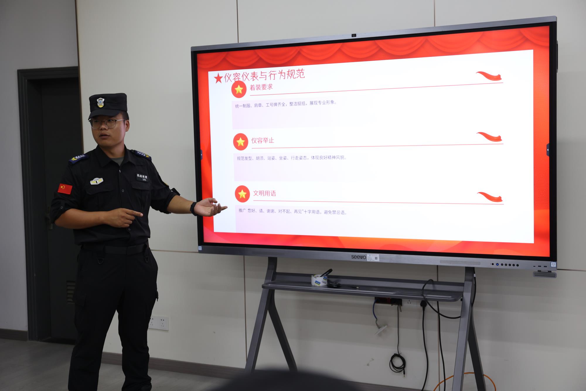 理论培训阶段,二大队中队长张萌凯围绕校园安全管理实际,就安保规章制度、岗位职责与执勤流程进行了专题授课,强化了队员的法治意识与责任担当。精诚特卫骨干队员结合实战经验,分享了巡逻防控、突发事件报告等操作规范,进一步提升了参训人员的规范履职能力,为日常安保工作提供了坚实理论支撑。