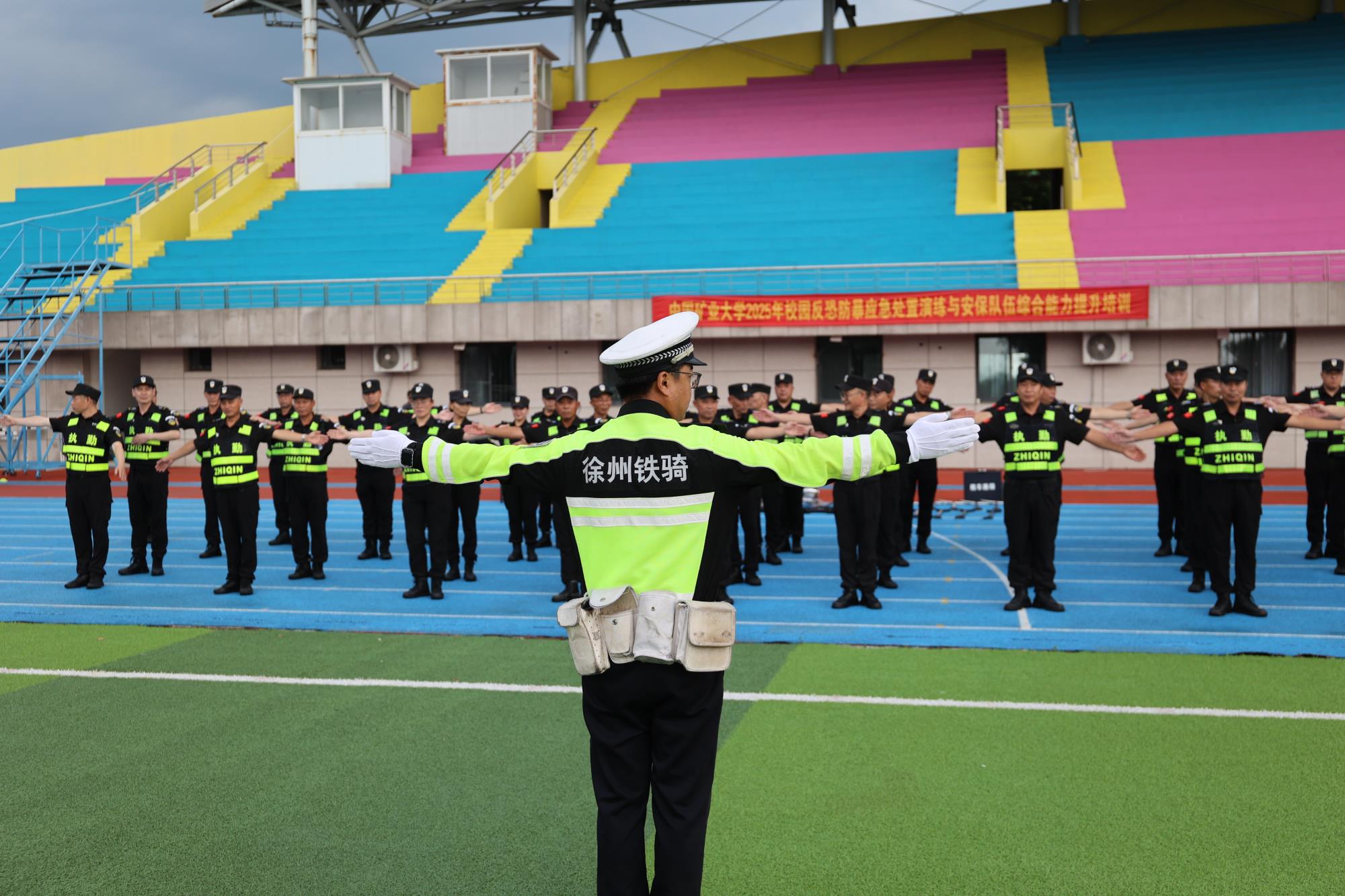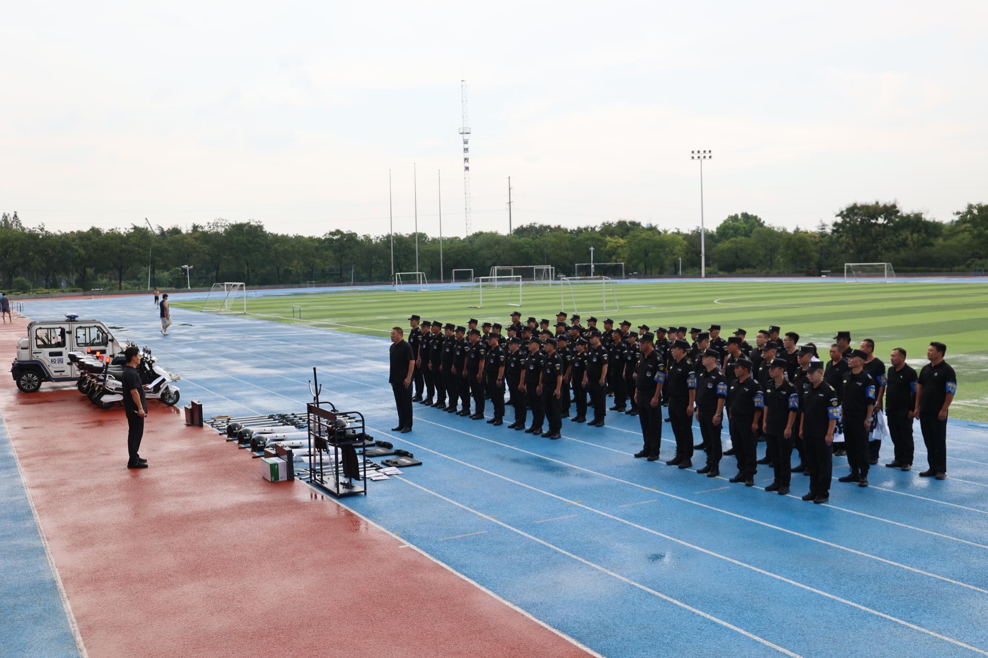 为全面提升校园安全防范水平和应急处置能力,切实维护师生生命财产安全和校园和谐稳定,8月22日,中国矿业大学保卫处,联合徐州市公安局巡特警支队、泉山交警大队七中队,在中国矿业大学南湖校区成功举办了“2025年校园反恐防暴应急处置演练与安保队伍综合能力提升培训”。此次演练由精诚特卫二大队队长周路组织保安队员参训,学校党委保卫部、保卫处副处长石莹,徐州市公安局巡特警支队作训科科长张曾,泉山交警大队七中队指导员郭志华,珠山派出所驻校园警务站警官及校保卫处相关科室负责人共同出席,共计60余人参加了此次培训演练活动。