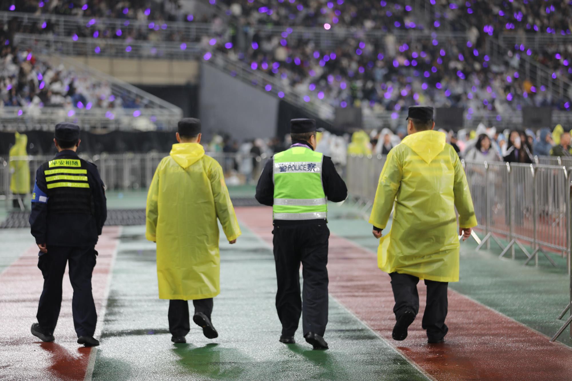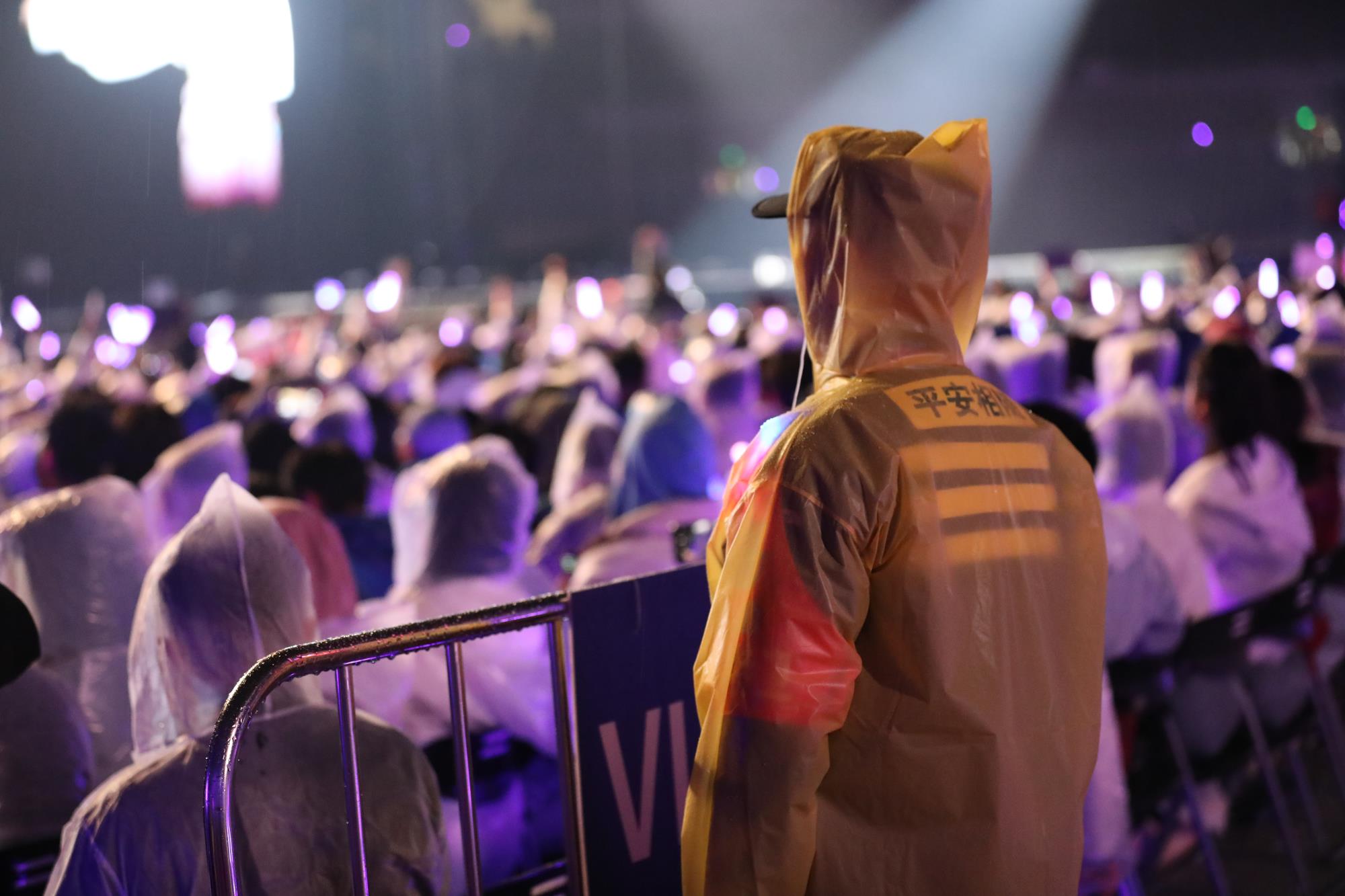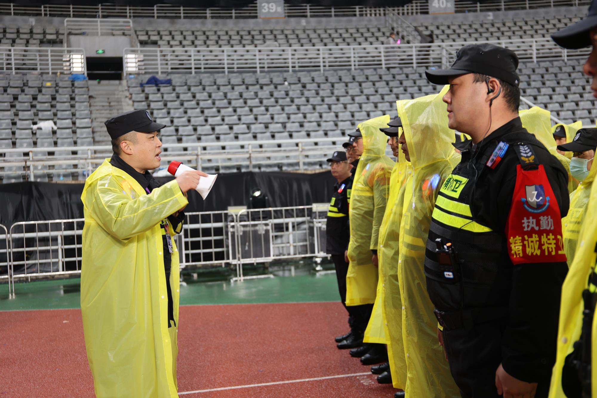 当最后一个音符消散在雨雾中,舞台灯光渐渐暗下,精诚特卫的队员们却没因雨水停下坚守的脚步。他们冒雨坚守,在微凉的夜色里静静伫立,耐心等待最后一名观众安全离开。脚步踏过积水是责任的印记,雨水混着汗水是忠诚的证明,这份执着,让 “平安” 二字更有温度。