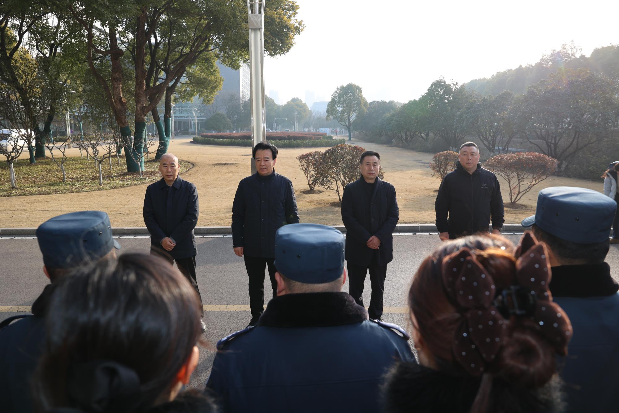 在听取项目负责人关于春节期间勤务部署的简要汇报后,高雷会长对精诚特卫驻市政府项目长期以来的安保工作给予充分肯定。他动情地说:“保安队伍是维护社会治安、保障人民安宁的重要力量。越是万家团圆的日子,越是大家最辛苦、最奉献的时候。你们舍小家、顾大家,用忠诚与坚守换来了城市的祥和与秩序,这份付出,值得全社会尊重。”高雷会长又特别叮嘱一线队员,在严寒天气和特殊时期,务必注意防寒保暖、劳逸结合,既要守护好岗位安全,也要守护好自身健康。