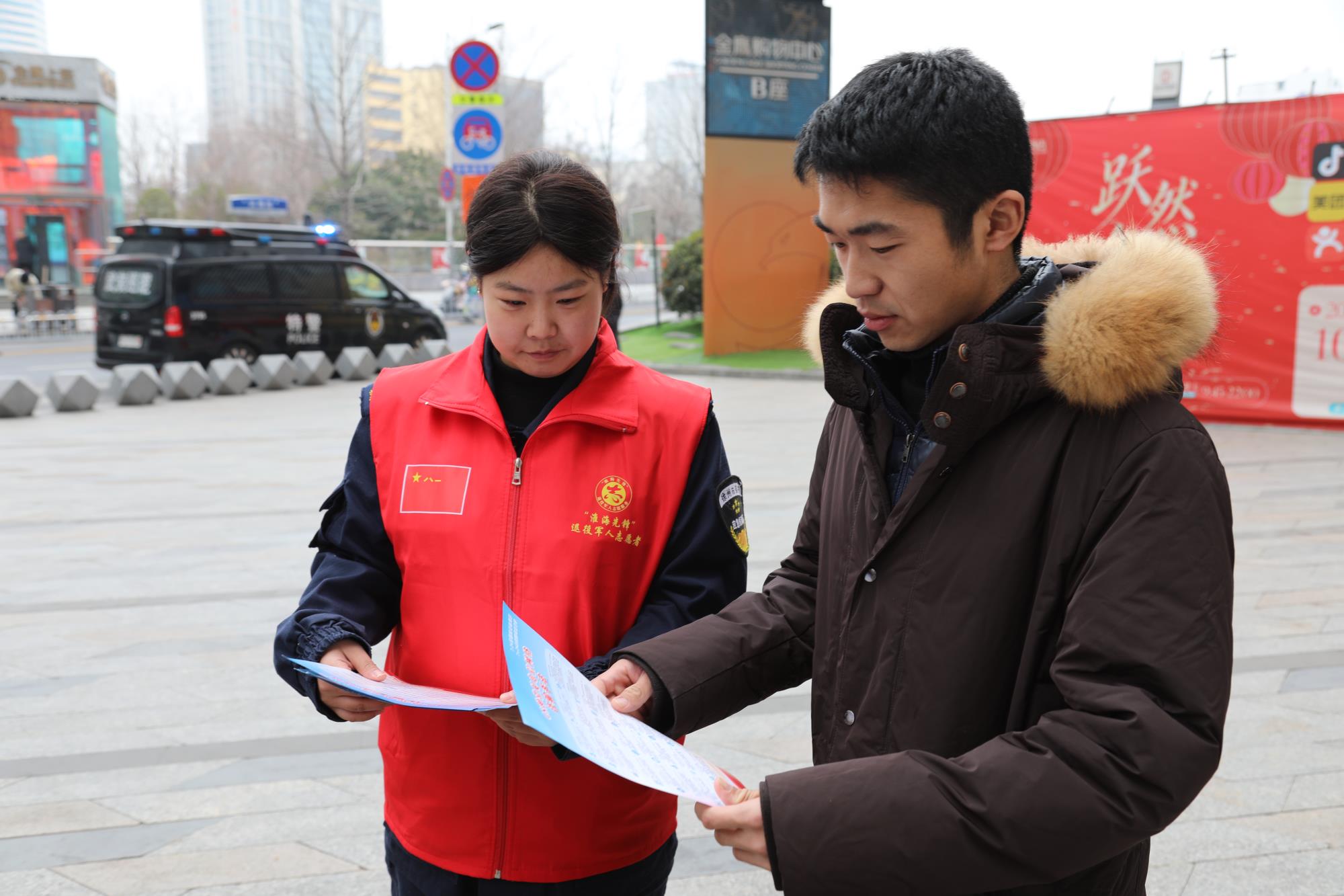 “阿姨,现在电信诈骗手段很多,陌生链接千万别点!”“小伙子,春节期间咱们徐州禁燃禁放烟花爆竹,为了安全和环境,咱们一起遵守规定!”在市中心,精诚特卫的队员们正忙着开展禁燃禁放与反诈防诈骗宣传活动。